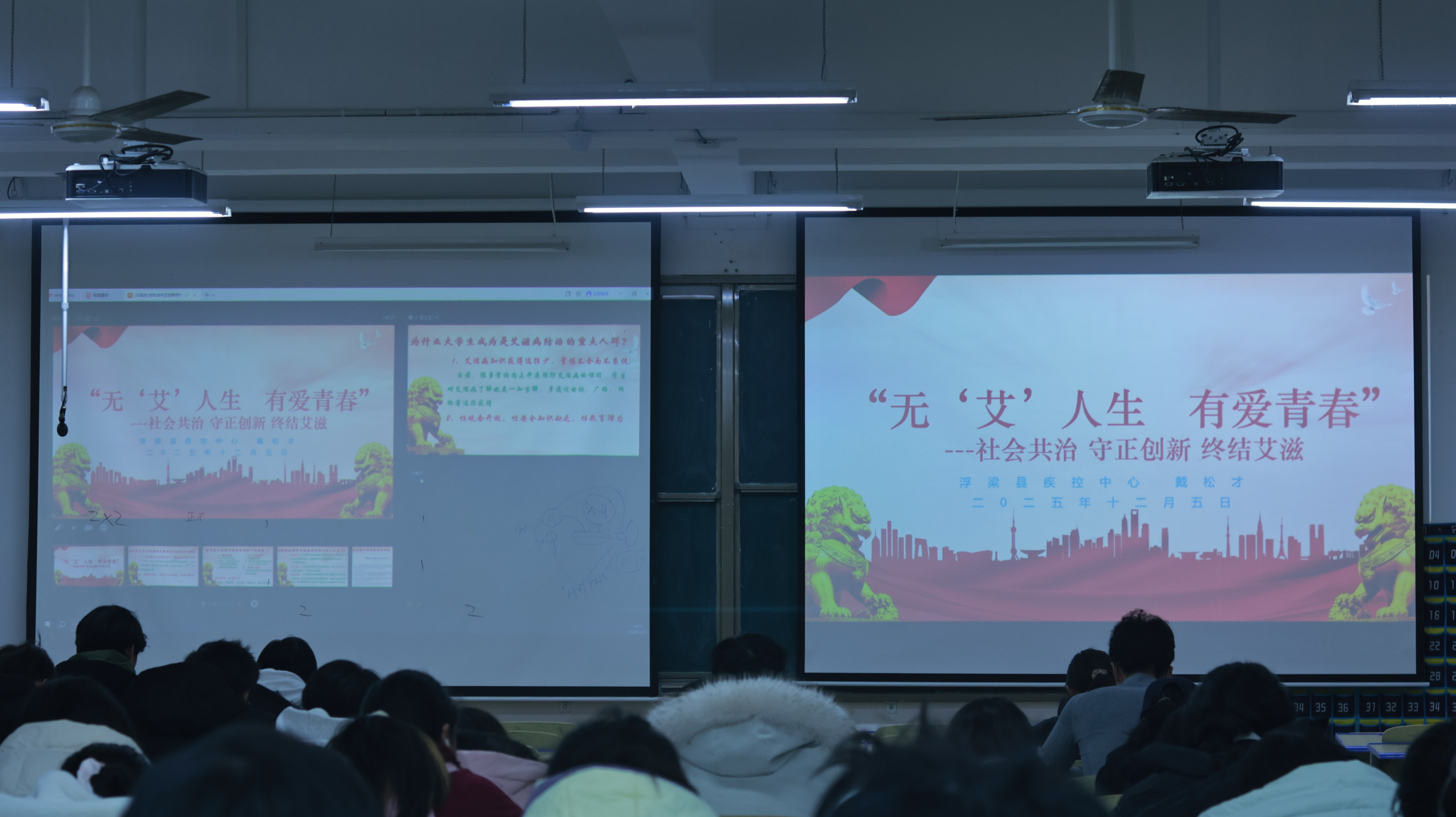 本网讯(文/刘思臣 卜勤思宇 图/陈素珍 王婷)为增强学生们对于艾滋病的防控意识,普及艾滋病的防治知识,12月5日下午,浮梁县疾控中心性艾科科长戴松才应邀在我校尚学楼301教室开展《无“”人生,有爱青春》专题讲座,共有160余名师生到场聆听。